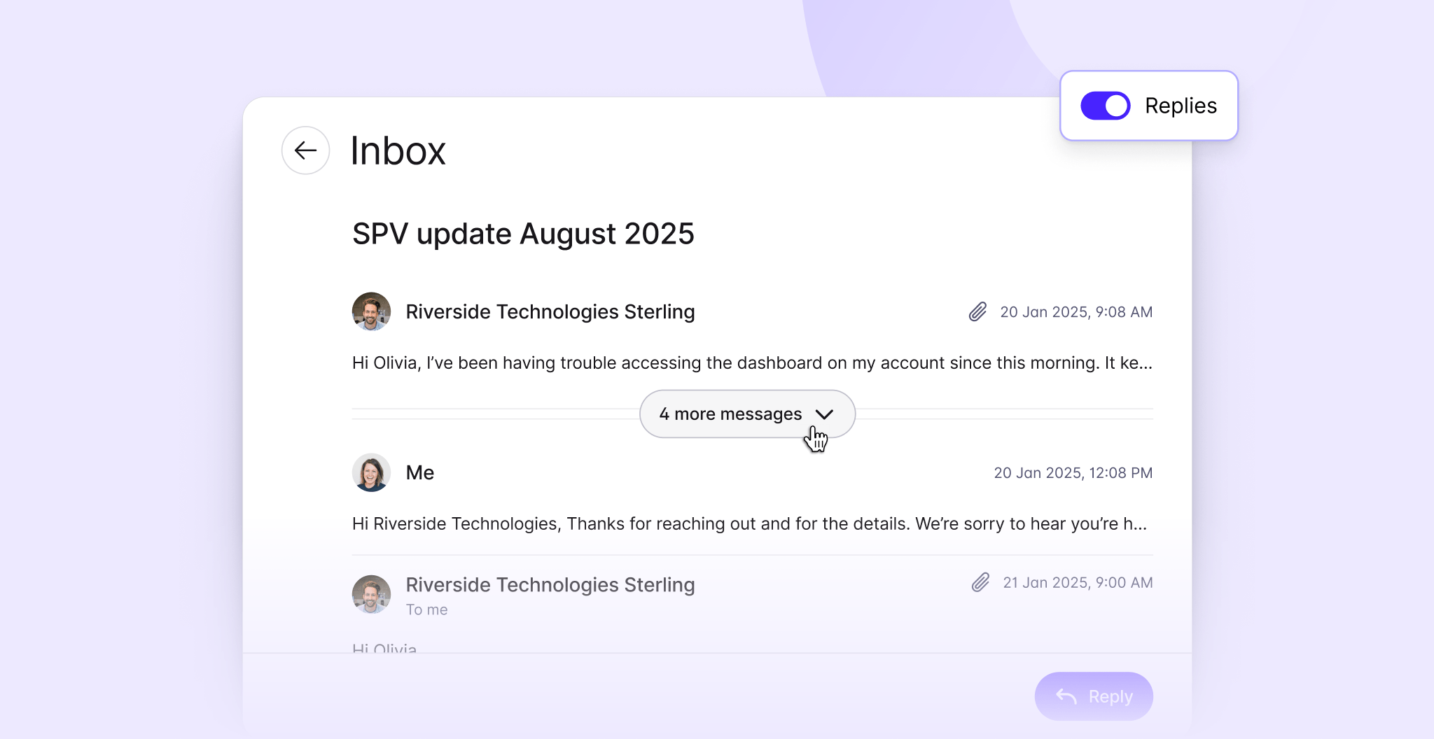 Enable replies, start conversations, and transform how your team engages with equity communications—all within the Cake platform they already know and use.