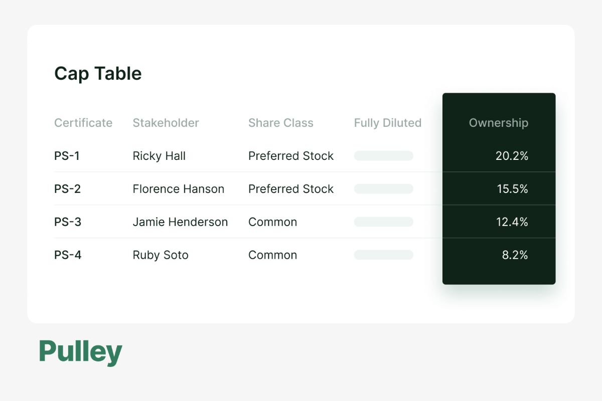 Like Cake Equity, Pulley caters to early stage companies, focusing on bringing simplicity to cap table management. Pulley's main features are its fundraising and modeling tools, SAFEs, and audit-compliant 409A valuations. Like Cake, it supports equity plans with its built-in equity calculators, offer letters, and vesting customizations.
