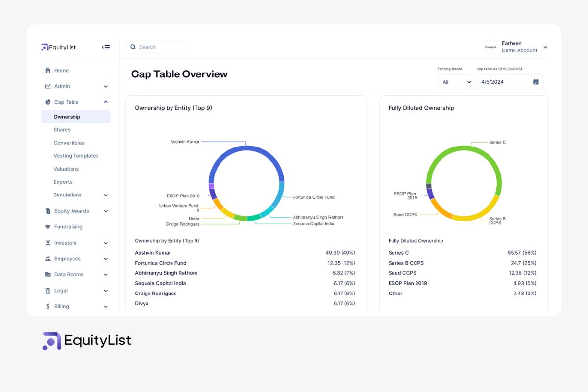 Backed by AngelList India, EquityList focuses on providing straightforward cap table management for global startups, with particular attention to emerging markets. Their platform aims to simplify global equity management and supporting international compliance needs.